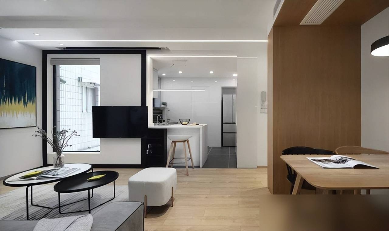 全屋浅木色地板配白墙,温润感扑面而来,比冷冰冰的极简风接地气。